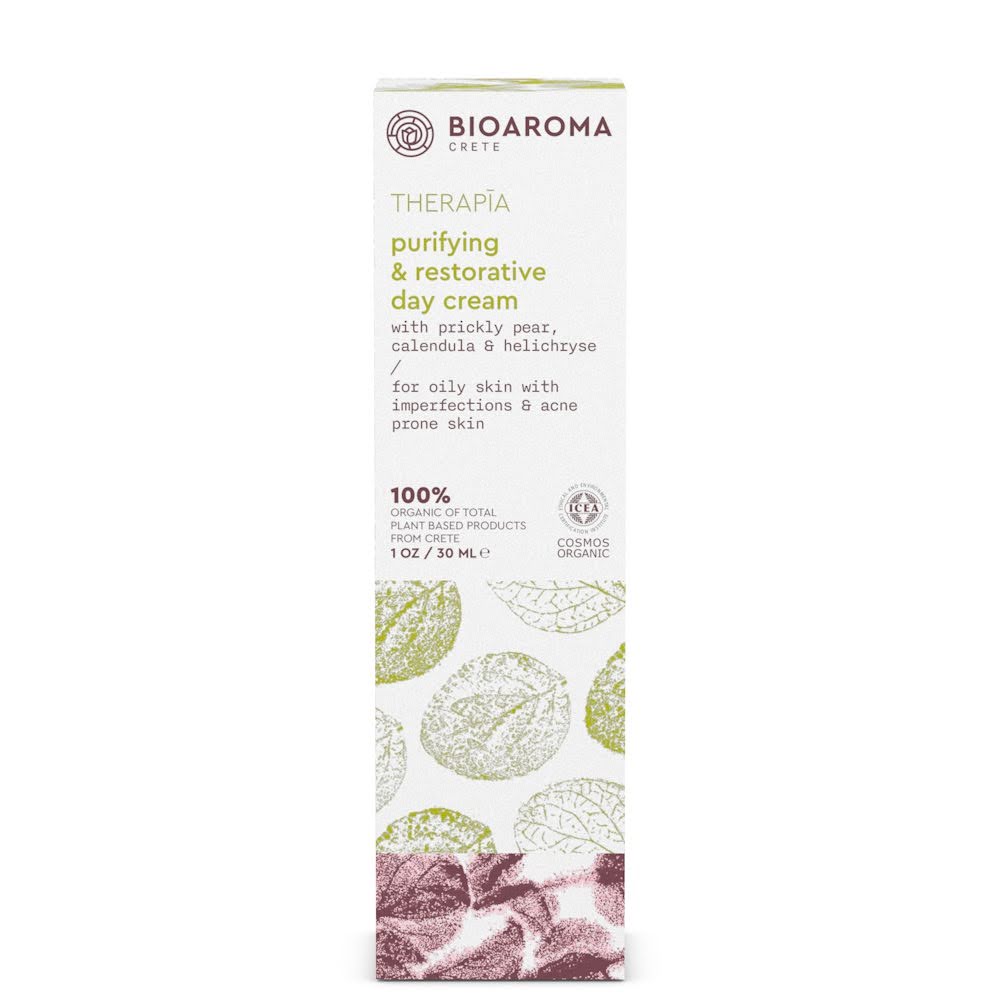 THERAPĪA Organic Purifying & Restorative Day Cream moisturizes and treats the damaged skin with imperfections & tendency for acne. As part of the complete THERAPĪA line, the beneficial & refreshing day cream is the daily ally in the fight against the imperfections of your skin. It creates a protective layer against daily pollutants and acts therapeutically against oily skin with imperfections. The contained ingredients include: