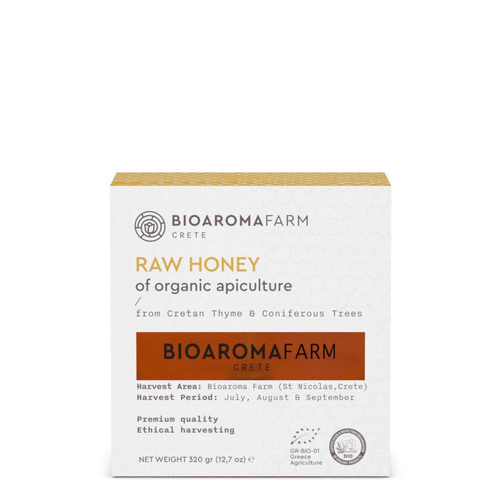 Raw organic honey with a distinctive aroma & high nutritional value. Thanks to the abundant pollen of the innumerable different flowers which we cultivate, our farm is a natural source of food for the bees. Reducing our planet's green also decreases the supply of pollen for bees, with the possibility of extinction. This is a threat to a considerable amount of life on this planet. Bees are crucial for our food production, as they pollinate plants and contribute to nature's regeneration. Bioaroma Crete Farm is like a bee paradise as it offers plenty of essential nutrients free of dangerous pesticides. Fixed hives have been placed on the estate to protect the bees due to their high attendance, which helps them overwinter and preserve Therefore we practice traditional beekeeping with love and respect for it, taking only the excess honey produced from the hive. Honey is collected raw, precisely as produced by the bees and is properly packaged, so it preserves all its natural characteristics and nutritional benefits, without additives and coloring. One of our key goals is to maintain the highest quality production of organic herbs and food products such as honey, oil, and carob products in Greece.