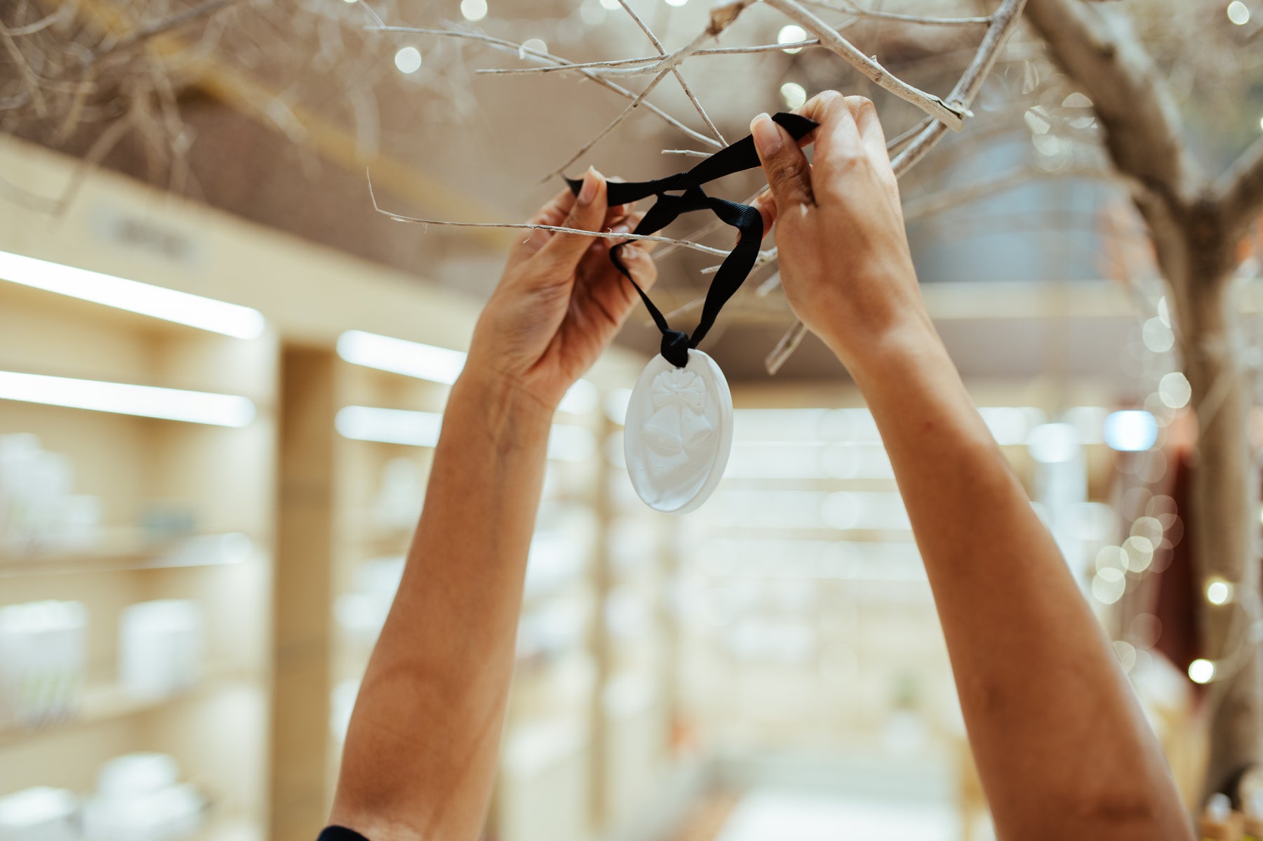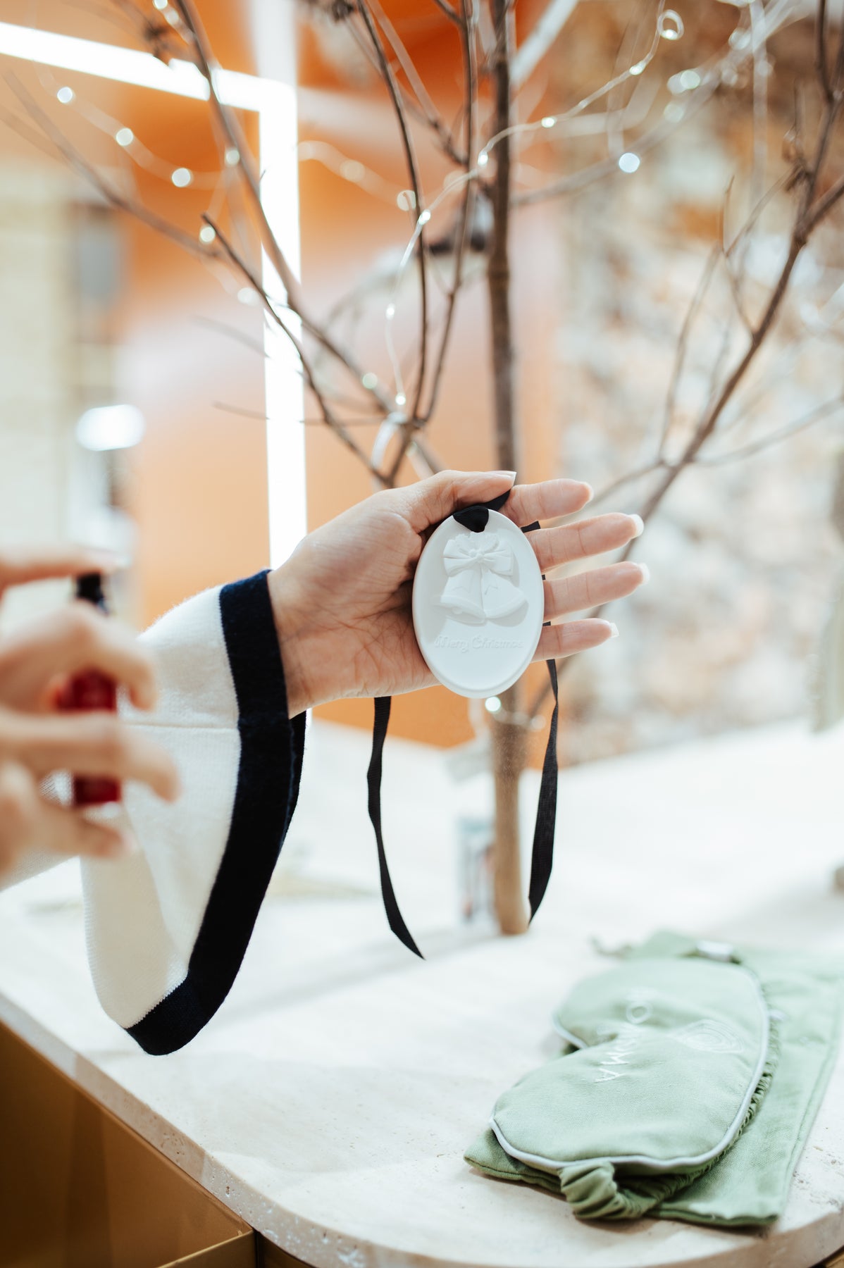 Enthüllen Sie die Magie der Jahreszeit mit unserem Weihnachtsgeschenkset. Sie haben die Wahl zwischen zwei aufwendig gefertigten Duftornamenten aus Ton – einer ist mit bezaubernden Weihnachtsglocken und der andere mit zarten Schneeflocken geschmückt. Zu jedem Ornament gehört ein Flaschenzerstäuber mit unserer festlichen Mischung ätherischer Öle mit den harmonischen Noten von Vanille, Orange, Zimt und Sandelholz.