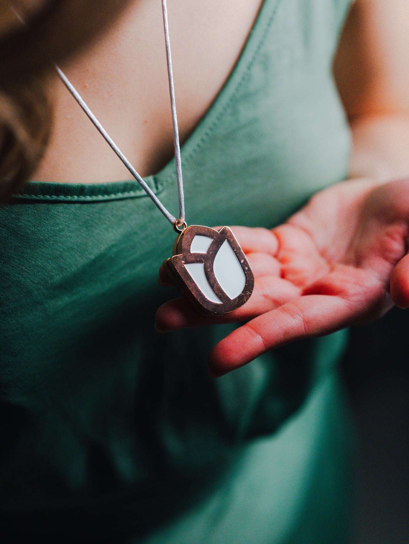Ein eleganter Anhänger mit natürlichem festem Parfum, hergestellt aus einfachen, reinen Inhaltsstoffen, für den täglichen Gebrauch und eine sanfte, natürliche florale Präsenz.